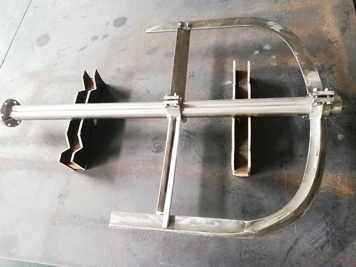 常規的攪拌形式有錨式、槳式、渦輪式、推進式、框式等,攪拌裝置在高徑比較大時,可用多層攪拌槳,特殊產品甚至會使用較為復雜的MIG式攪拌。