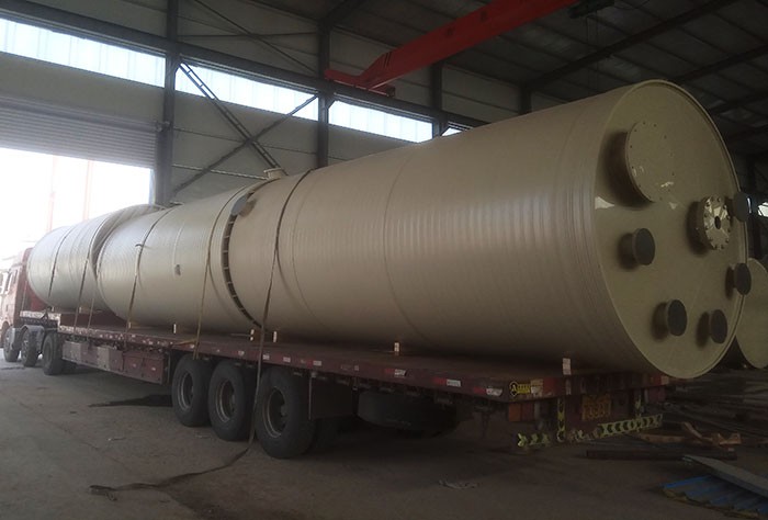 酸霧處理塔是酸霧廢氣凈化不可缺少的設備,硫酸、硝酸、氫氟酸、鹽酸等工藝操作過程中產生酸/堿性氣體,廢氣通過引風機的動力進入填料塔,在填料塔的上端噴頭噴出吸收液均勻分布在填料上,廢氣與吸收液在填料表面上充分接觸,由于填料的機械強度大、耐腐蝕、空隙率高、表面大的特點,廢氣與吸收液在填料表面有較多的接觸面積和反應時間。凈化后的氣體會飽含水份經過塔頂的除霧裝置去除水份后直接排放大氣中。酸霧處理塔的工作原理是將氣體中的污染物質分離出來,轉化為無害物質,以達到凈化氣體的目的。它屬于微分接觸逆流式,塔體內的填料是氣液兩相接觸的基本構件,塔體外部的氣體進入塔體后,氣體進入填料層,填料層上有來自于頂部噴淋液體及前面的噴淋液體,并在填料上形成一層液膜,氣體流經填料空隙時,與填料液膜接觸并進行吸收或綜合反應,填料層能提供足夠大的表面積,對氣體流動又不致于造成過大的阻力,經吸收或綜合后的氣體經除霧器收集后,經出風口排出塔外。廢水在酸霧凈化塔循環池中經加藥處理后循環使用,沉渣定期清撈、外運。
